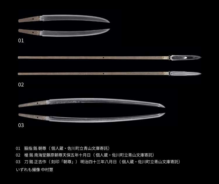 現存する刀剣や文献、石碑などから朝尊の生涯を追います。
