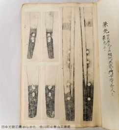 青山文庫収蔵刀剣9振は図版や押形で公開されたことがなく、初めてご覧になる方が多いのではないでしょうか。高知城歴史博物館からは”城博の銘の長い方”でおなじみの「刀 銘 土佐国高岡郡春木城主従五位下武蔵守藤原朝臣家重君十一代後胤谷脇勘解由藤原重之君應需 同国同郡黒岩郷二ツ野村産森岡南海太郎朝尊於鳳城堀川一條作之干時嘉永六年癸丑十二月中浣」が登場します。