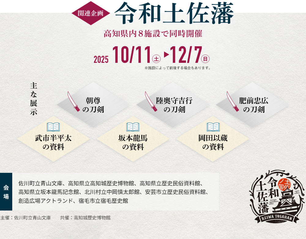 2025.08.07本展の開催に合わせて、施設連携展示「令和土佐藩」の開催が決まりました。