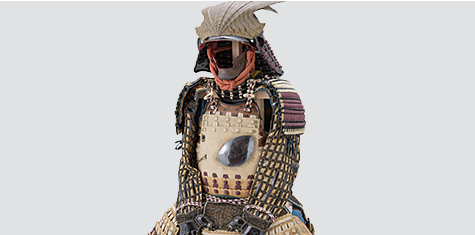 兜は、板屋貝を模した変わり兜。胴は白韋で包み、銀の二十夜月を置き、上部を白糸で、下部を紫糸で威した華やかな仕立て。手を加えながら4・9・10・11代藩主の着領として受け継がれてきた。