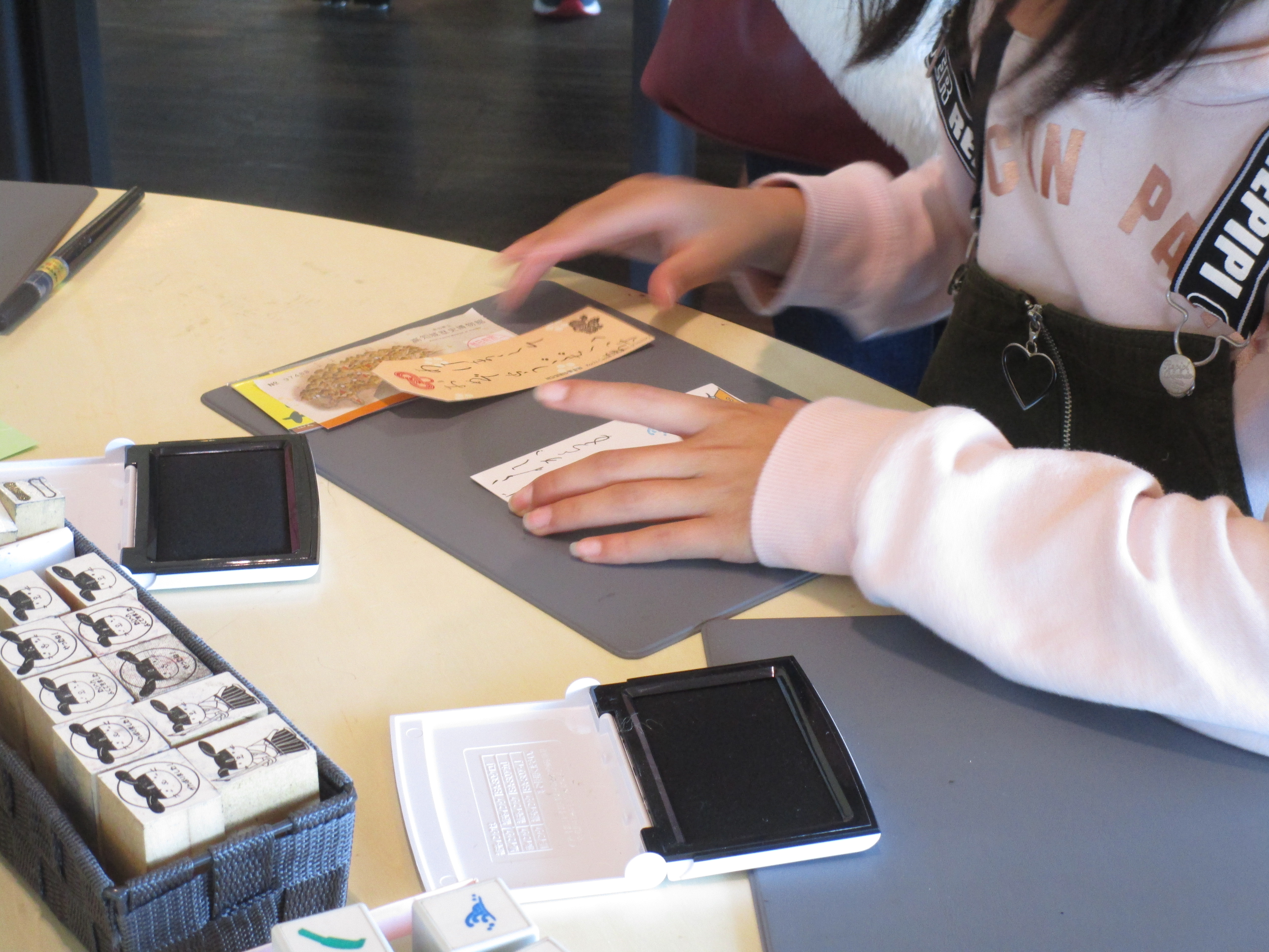 高野切のうつくしい文字を1文字ずつぬき出したスタンプで名前や好きな言葉をおして、しおりやカードをつくってみませんか?